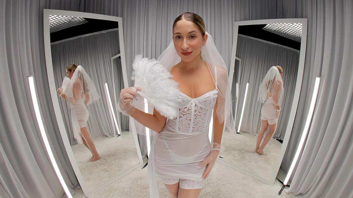 In this explicit bride VR porn scenario, Kate Murrr takes on the role of a bride, striking a seductive pose designed exclusively for the camera’s close-up framing. She stands with confidence, letting her hands glide over her body, fingers teasing her curves and caressing her breasts, drawing attention to her chest while holding direct eye contact with the lens. The viewpoint remains tightly centered on her upper torso, capturing each subtle movement of her sensual hand play. Her actions are slow and purposeful, heightening anticipation without rushing the controlled tempo. This bride VR porn 3D scene focuses on her elegant stance and the way she explores herself with her hands, maintaining a consistent rhythm throughout. The shot keeps her face and breasts in clear view, accentuating the intimate connection and visual appeal of her teasing touch. There is no penetration or oral interaction, with the entire emphasis placed on Kate’s erotic manual stimulation and presence as a bride in this intimate moment.