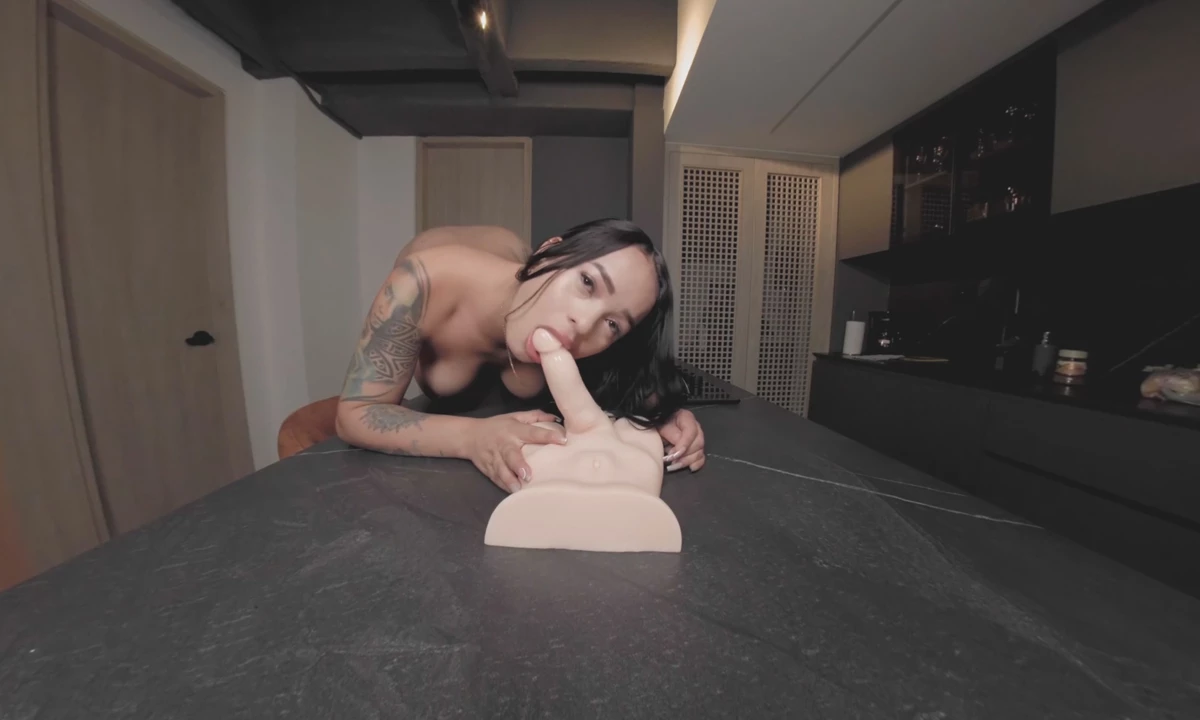 While tidying up the kitchen, Yennifer chooses to climb onto the counter and then onto something more exciting. Watch her as she cleans and reaches climax in this kitchen VR porn adult VR scene!