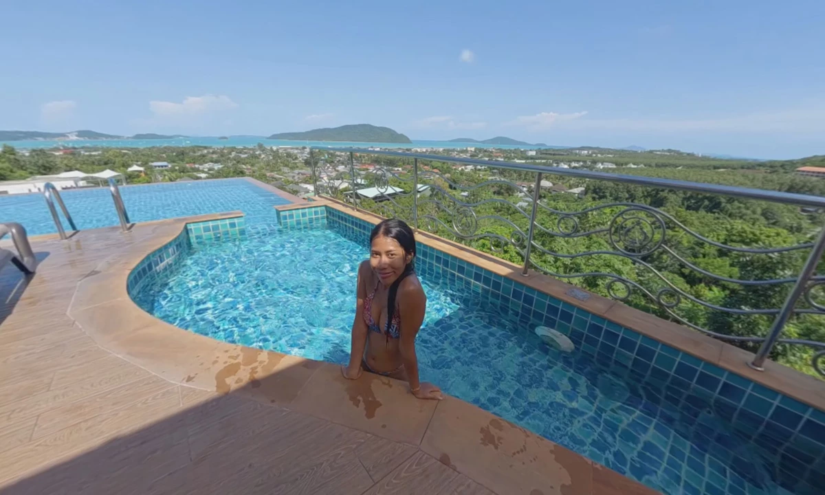 You’re relaxing by the pool at a beautiful resort during your vacation with your Thai girlfriend, and then you return to the room to watch her take a shower, wash herself, and enjoy playing with her favorite large BBC dildo in a steamy shower VR porn adult VR scene.