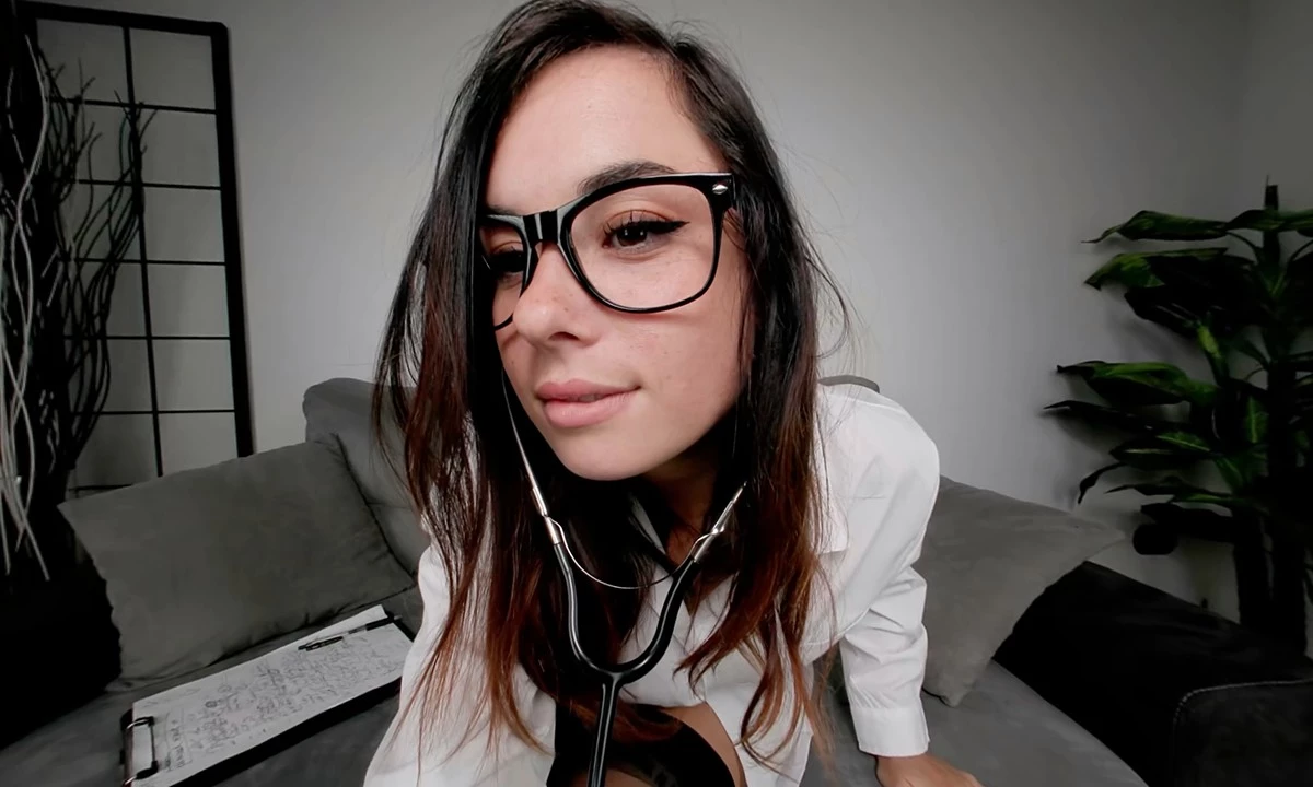 After a long day of seeing patients, alluring brunette doctor Lilith greets her last appointment—a man who admits he has trouble getting hard. When he confesses that feet turn him on, Lilith immediately knows how to “treat” him. She slips off her black stilettos, revealing her delicate feet encased in sheer black stockings, teasing him with every arch and wiggle of her toes. Observing his cock grow at the sight, she chuckles softly, unbuttoning her white coat to reveal her tattooed curves and perky breasts. Guiding him to stroke himself, Lilith keeps the attention on her flawless feet, moving them close and showing every angle until his desire is uncontrollable. In this intimate black vr porn 3D scene, with a knowing smile, she watches his hot load spill—another satisfied patient leaving her private office.