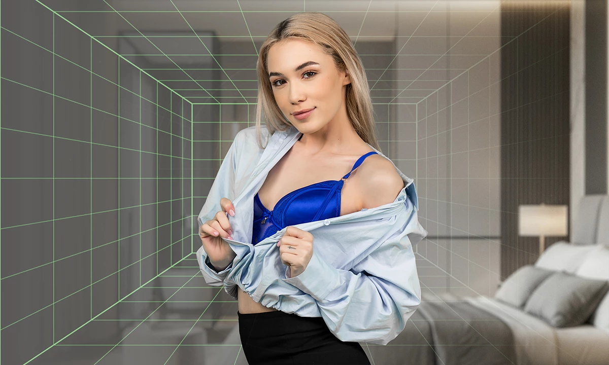 Time to bring Rika Fane into your real world - literally. Thanks to next-level passthrough AR technology, she’s not on screen - she’s in your room, looking you up and down and telling you you're a good boy. Dressed in sexy lingerie and dripping in confidence, this blonde bombshell struts right up and tells you exactly what she wants: your thick, hard cock in her mouth. Her Czech accent teases, her lips tempt, and her eyes never leave yours as she drops to her knees and gets to work. From soft kisses to raw, wet POV sex, this feels real. You're not just watching porn, you're right there fucking Rika Fane and she's right there with you.