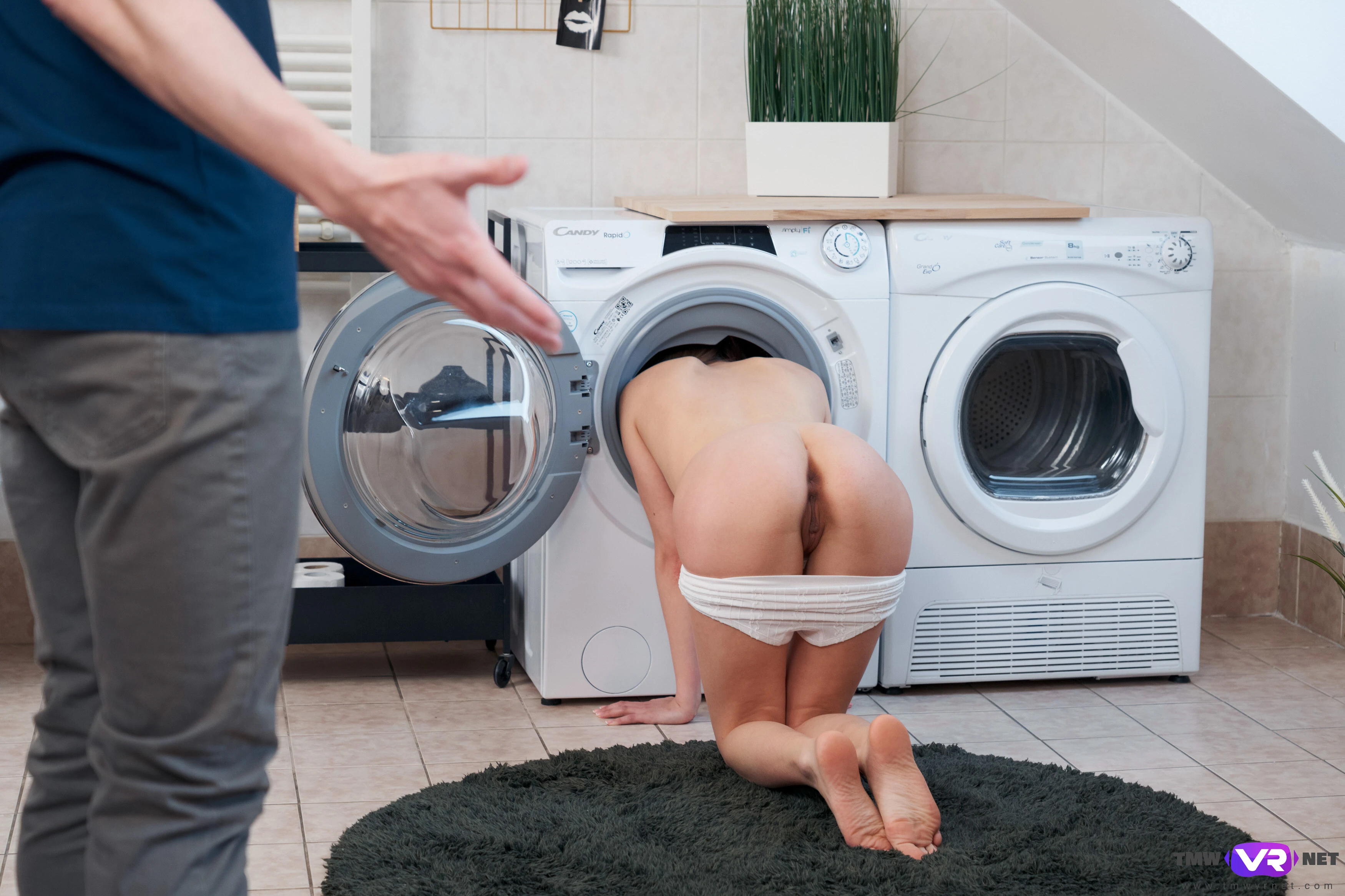 Elena Vedem spends a lot of time doing the house chores, from cooking to cleaning. This is laundry day, and she puts dirty clothes into the washing machine when she realizes the outfit she is wearing at the moment is dirty as well. She takes off her clothes and puts them into the machine as well. Her boyfriend walks by her at that very moment and gets a fantastic chance to enjoy her yummy naked butt. Later he finds out that Elena Vedem did that with a reason to seduce him into a passionate fuck, but he doesn’t mind it as the cutie always gives him tons of pleasure.