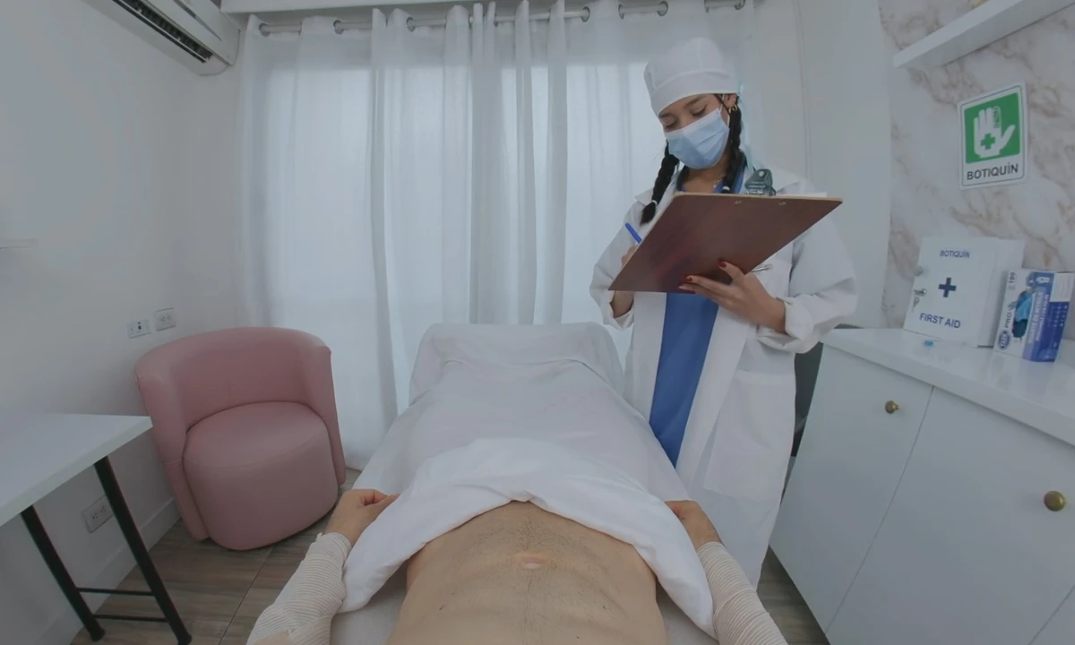 Carolina Guerrero is the kind of nurse who knows just how to heal you - in all the right ways. This sultry Colombian brunette brings her irresistible bedside manner to life. Wearing a tight nurse outfit and a teasing smile, Carolina starts with a sensual oiled massage that quickly turns into a steamy hand job and deep, wet blowjob. Her ponytail swings as she rides you in cowgirl and reverse cowgirl, bringing the heat with every bounce. Close-up shots capture her intensity as she moans in missionary and grinds in doggy style, ending in a messy creampie. With whispering, shaved skin, and inked curves, Carolina turns the clinic into your hottest fantasy.