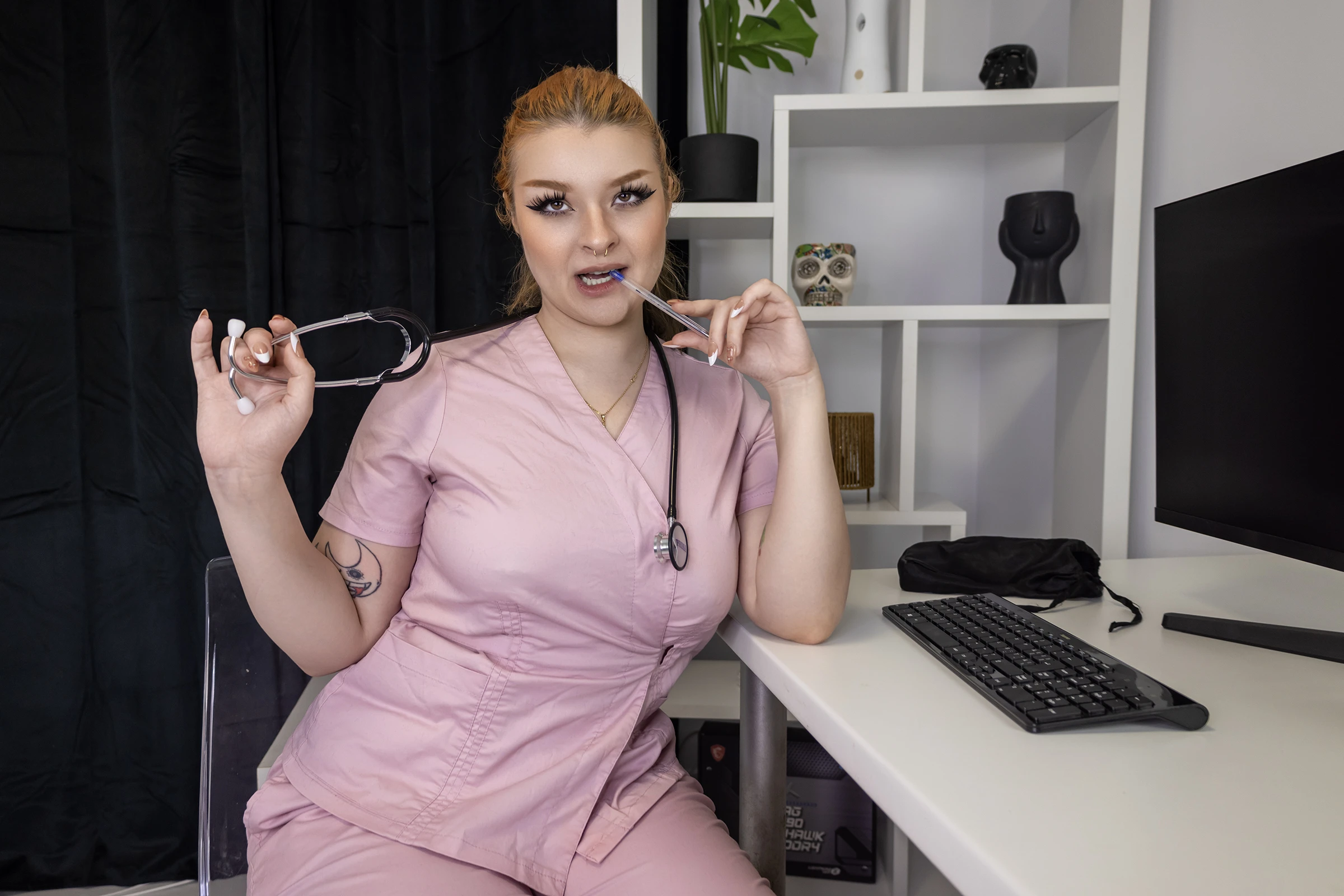 I’ve been in the office all day, staring at these medical charts, and I can’t focus. It’s been too long since I’ve felt any real excitement. The pressure’s been building, and I can't ignore it anymore. I decide to take matters into my own hands—starting with peeling off this tight uniform. It’s time for a different kind of treatment. Let me show you how I release the tension, one seductive move at a time.