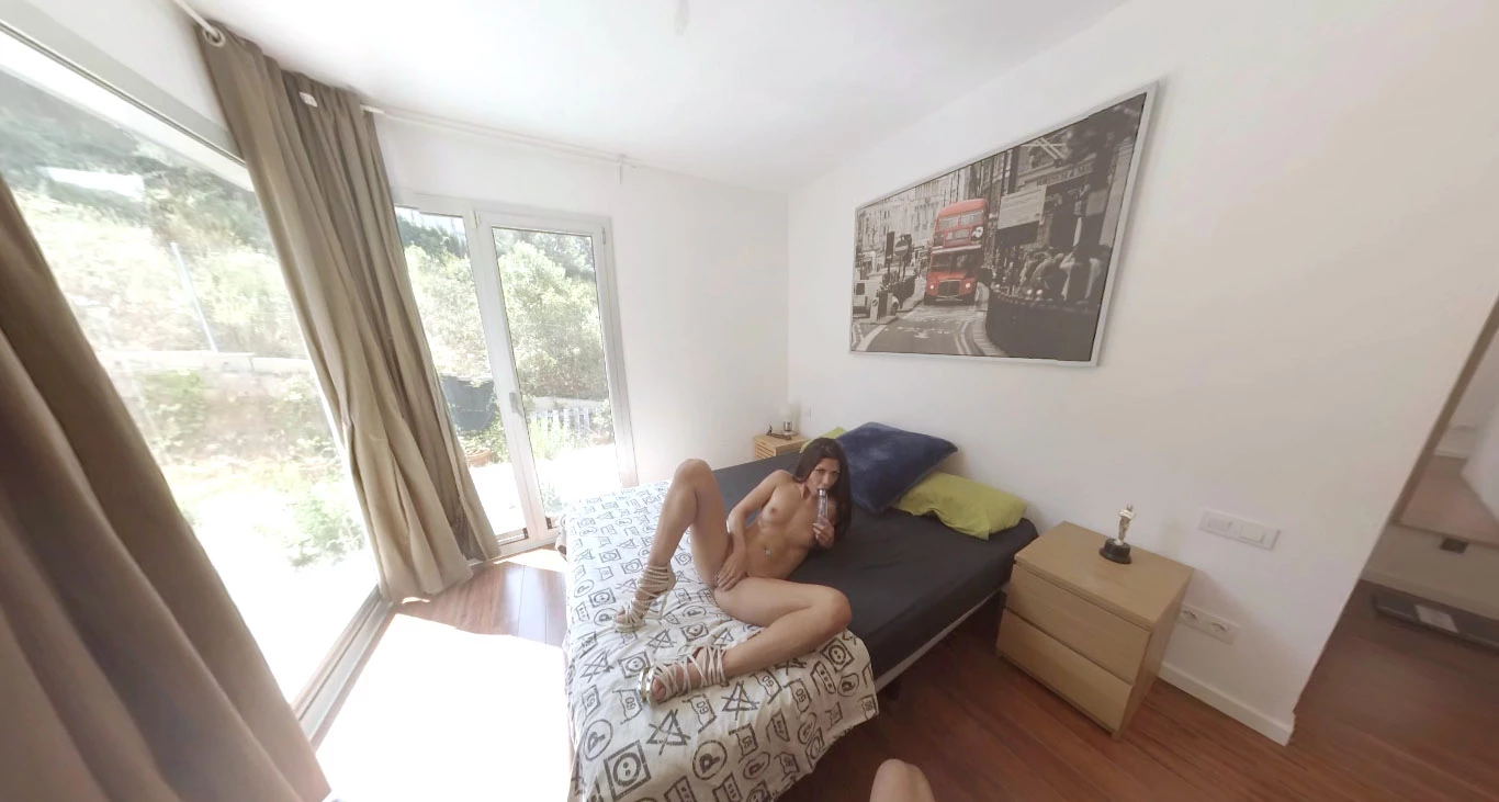 The hidden camera caught Latina MILF next door Alexa Tomas when she came in from the pool in a hot pink bikini. Climbing up on the bed, she took the bikini off, got on her knees, and reached back to rub her pussy from behind. Rolling onto her back, she sucked on her toy then spread her legs and fucked herself not realizing her neighbor was watching it all go down.