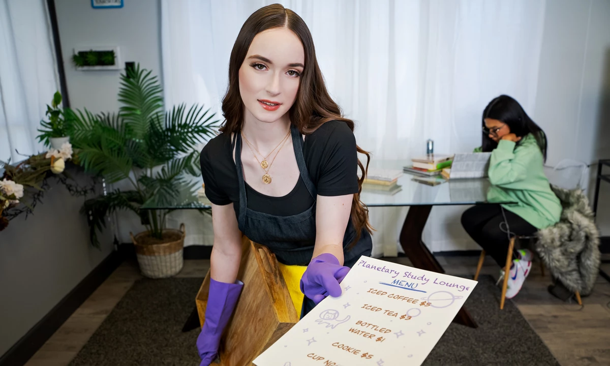 As you're sitting in your study group session, your mind starts to wander. You have no interest in the study materials, but you're feeling kind of horny, and you have your eyes on one of your study partners, Hazel Moore. Suddenly, she walks over to you and asks if you need anything. You say no, but she's insistent. Eventually, you realize that what she means is if you need anything from her, like her pussy, her soft tits, or her mouth wrapped around your huge cock. You look around at everyone else, but they don't budge. Soon enough, Hazel strips naked, and you're both naked on the floor. She starts sucking your dick, and no one moves. Even if this is a daydream, you don't want it to end, so you just enjoy the moment of fucking Hazel's brains out in front of everyone. What a fantasy.