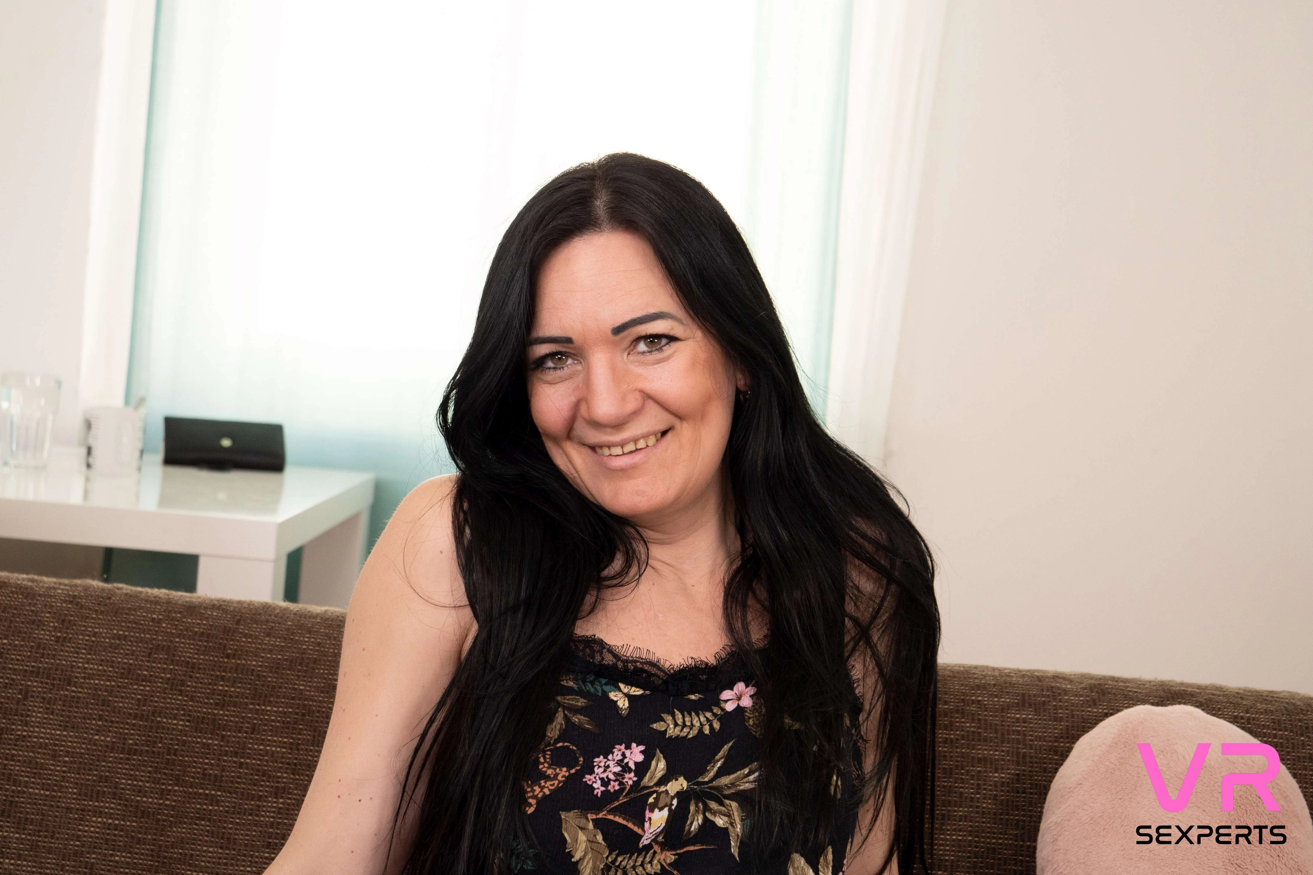 Imagine walking through the door to see a beautiful brunette MILF like Lucy Charming sitting on the couch, wearing a short dress that shows off her amazing legs and sexy thigh-high stockings, and white stiletto high heels that'll have you drooling. It's not just coming true in your imagination, because SexLikeReal has exactly that scenario ready and waiting for YOU in a hot solo VR porn video from VRSexperts!