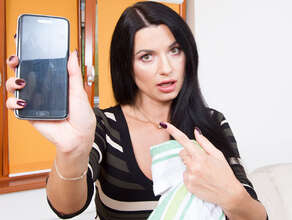 As the luscious raven-haired step mom with big tits Ania Kinski was cleaning the table, her pervy stepson was taking compromising pictures of her. Noticing that something was going on behind her back, hot MILF Ania caught her husband's son redhanded and upon inspecting his phone found many naughty pictures of her. This, naturally, made her very angry and she decided that enough is enough, so she went on to pull out her massive boobs and start sucking on her step son's large cock. But, soon her daughter came barging in looking for her laptop. Luckily, sexy Ania was able to hide what she was doing. As soon as her daughter was gone, this ravishing cougar went back to the job at hand and rode her stepson’s hard member until it covered her pretty face in sticky cum. That ought to teach this little pervert a valuable lesson!