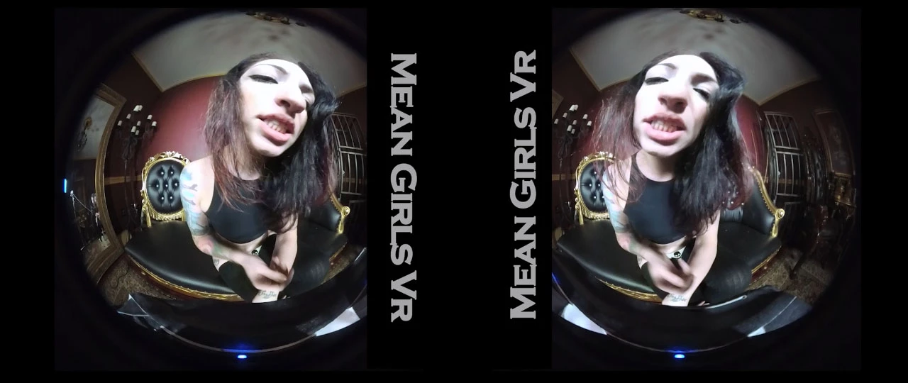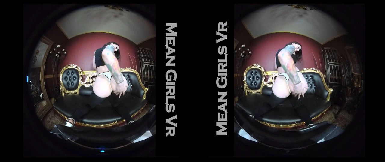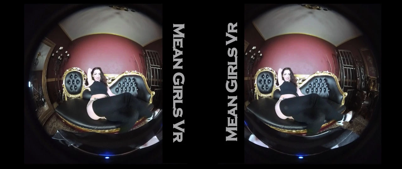 Mean girl Cybill takes charge right away by telling this guy that he didn’t get to touch her. Wearing a crop top, thigh high stockings and a thong, she gets up on the couch, bends over and puts her big, round ass in his face. Encouraging him to stroke his cock, she spits on his dick then lets him worship that ass as she bends over and spanks herself.