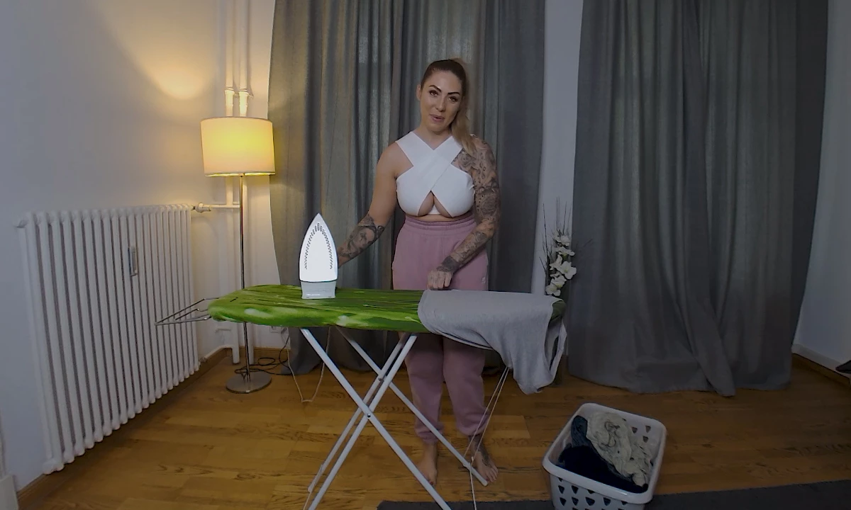 Mia Blow is a German tattooed MILF, she loves to come to your flat and ironing for you, she knows your clothes very well and take care of you, you can not go outside with your wrinkled jeans, she says, her only option is take off and ironing, she doesn't waste time and loves to strips while work, she teases you with her big boobs and ass. Mia makes a perfect blowjob but the chair is not so confortahbe and invites you to bed, she also realises that the sheets must to be ironing too but, in this moment, she is very horny and wet for this and prefers a hard fuck.
