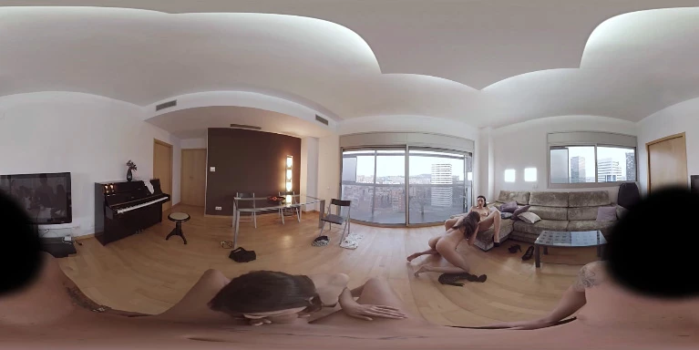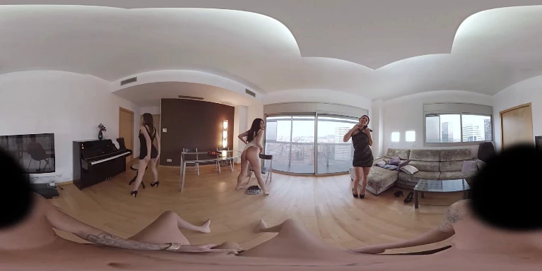 Three's a crowd, the old saying goes. Not when you are talking about sexy women who want to get naked and fuck. Kicking back in your living room, these three hotties you met at a strip club do their best stripper impersonations as they move their fine bodies and get naked while you watch. One of them walks over to you as you slip out of her pants, drops to her knees in front of you, and takes your thick cock in her mouth. While she gives you a fantastic blowjob, the other two babe make their way over to the couch where they take turns eating each other's pussies.