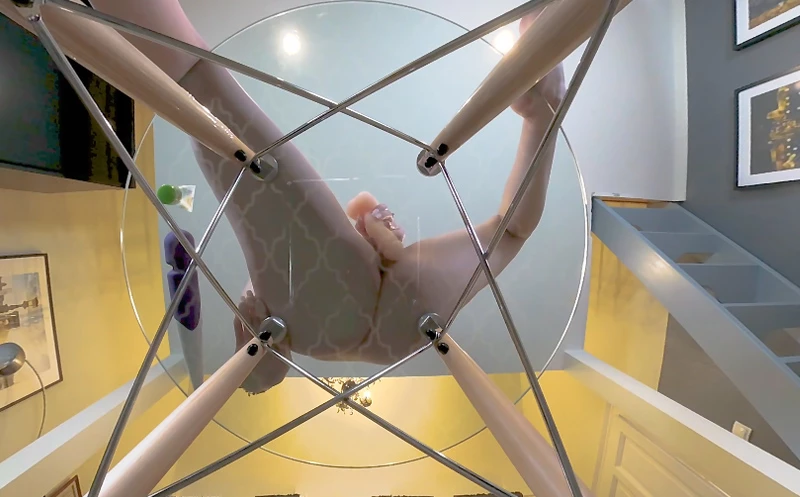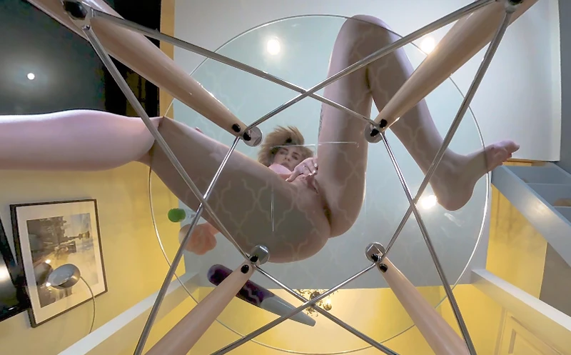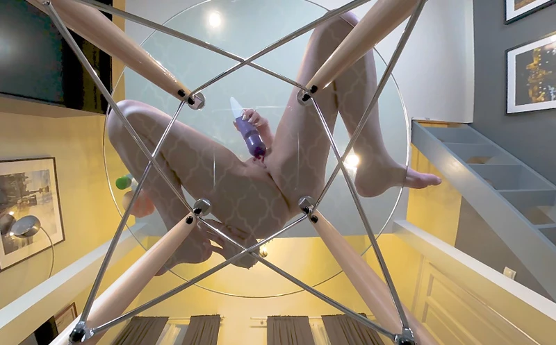 You sneak into Laura’s bedroom and install a hidden camera in her plexiglass, see-thru chair. You never imagined it would work this well. The hottie comes in, gets naked, and sits in the chair giving you a perfect view of her shaved pussy and nice ass. She has no idea you are watching her when she grabs her vibrator and uses it to get herself off, getting that chair wet as she cums!