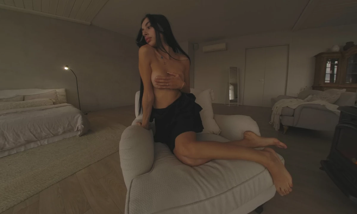 Valentina Shark is a pretty young thing with a pretty little black dress. She got dolled up for an appointment, but after seeing how sexy she is in the mirror, she's starting to think that she can't go out without some light masturbation first. She starts feeling herself next to her chair, and she can't help but get turned on with each passing moment. She starts things off by pulling her dress down to show off her perfect, perky tits. From there, she moves to the bed so she can get fully naked. She has a thin, athletic body, but her curves are still entrancing and full-bodied. She sexy and she knows it, and she can't wait to show you every inch of herself, inside and out. Yes, she's running behind now, but horniness always cums first.
