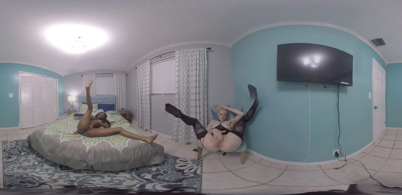 It was time for some sexy lesbian interracial fun when this gorgeous black girl brought a hot white girl home and had her slip into some sexy lingerie. While the white girl, with short blonde hair, watched and played with her tits, the black girl rolled around on the bed, writhing with pleasure, as she ran her hands all over her curvy body. The white girl got so turned on watching the ebony hottie fingering herself that she stripped off her own panties and went to work on her pussy. The ladies showed how wide they could spread their legs then had a race to see who could get themselves off the fastest as they rubbed those clits with prejudice.