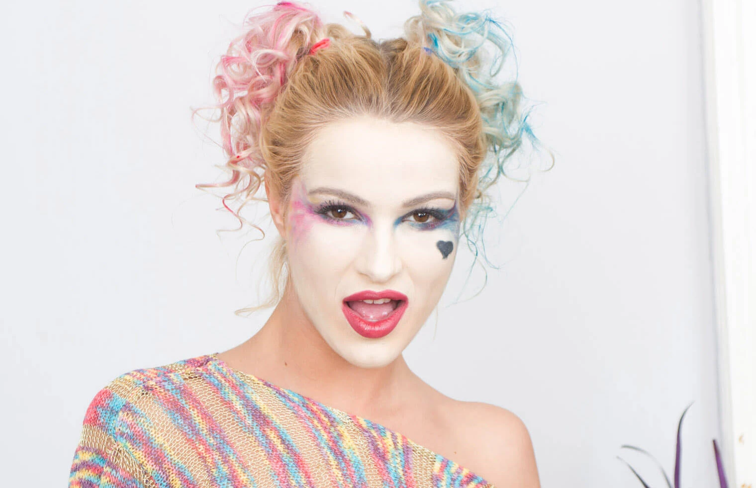 Cosplaying is one of blonde babe Cherry Kiss’s favorite hobbies. Dressed up like the ultimate bad girl Harley Quinn, Cherry put on a hot show for her man by seductively stripping off her clothes then she lay back on a table, spread her legs, and rubbed her wet, pink pussy. Breaking out her big, black dildo, she eased it into her pussy before standing it up on the table so she could ride it then she took this hot show to a jokingly hot level when she slammed that toy into her tight ass.