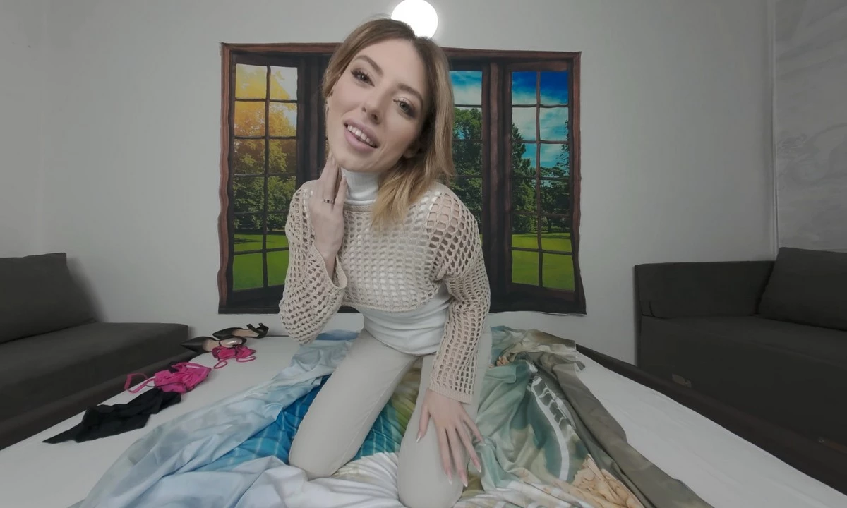 Fanta Sie is a gorgeous lingerie model who wants to please you in her POVCentralVR debut. The blonde-haired lovely gets you in the mood with a sultry striptrease and lingerie show. She strokes your cock until it is rock-hard. Then she slips it into her mouth for a sensual blowjob, and she makes sure to finish the job for you. You fill her mouth with an oral creampie that leaves your cum dripping from her pretty lips.