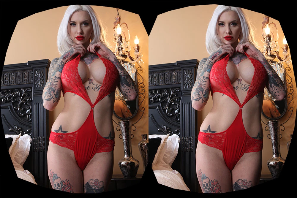 Bad girl Rachel Rampage looked hotter than an erupting volcano strutting around the room in some sizzling hot, red lingerie. Moving around the room, the busty babe does a hot striptease showing off her curvy, sexy body and many tattoos. Getting on all fours, she reaches back and spreads her pink pussy wide open. This bad girl desperately needs a dick deep inside her.