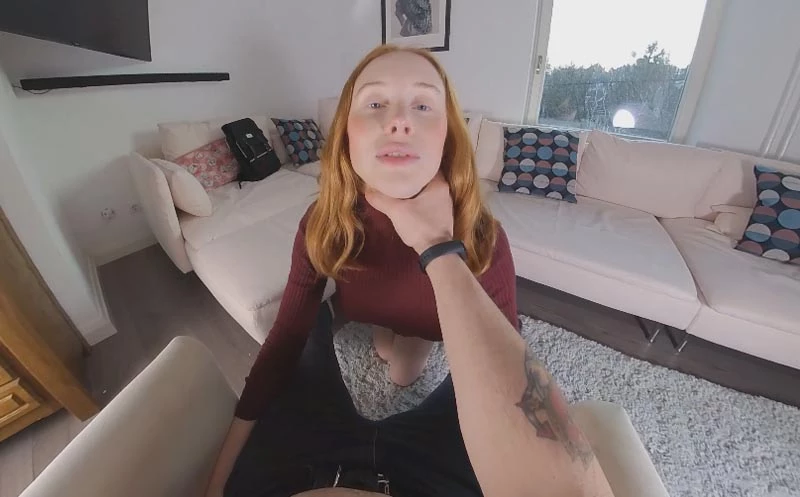 Your cute, redheaded girlfriend Lenina is on her knees in front of you letting you pull her shirt up to play with her nice tits while she yanks your pants down and takes your dick in her mouth. She looks like the nice girl next door, but she has a very naughty side she loves to let out. Lenina enjoys it rough so she lets you pull her hair and smack her face until her cheeks are red as she throats your cock. As you get close, she licks and sucks on your balls while you jerk your shaft until you cum and blast a load all over her soft lips and into her warm mouth.