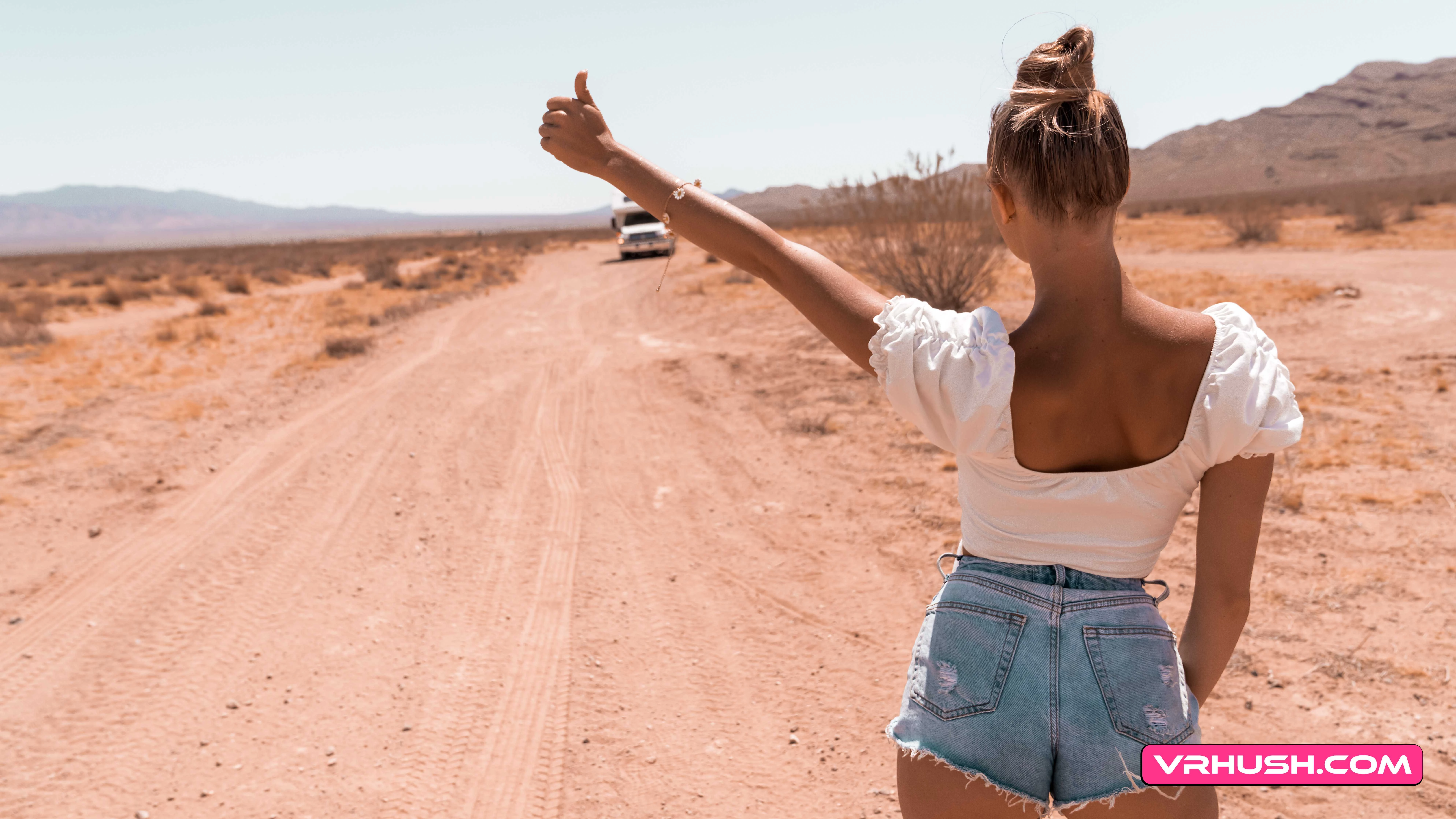 It's time to leave you troubles behind and hit the wide open road in your brand new RV. You THOUGHT you were getting a little peace and quiet all by yourself in the Nevada desert, but soon you spot Emma Hix on the horizon and things are about to get a whole lot more interesting. Why don't you let this hot and horny pornstar help you break in the bed in the back of the RV and see what two people can get up to in the middle of nowhere. This is one babe that knows how to say "thank you" for picking her up, that's for sure!