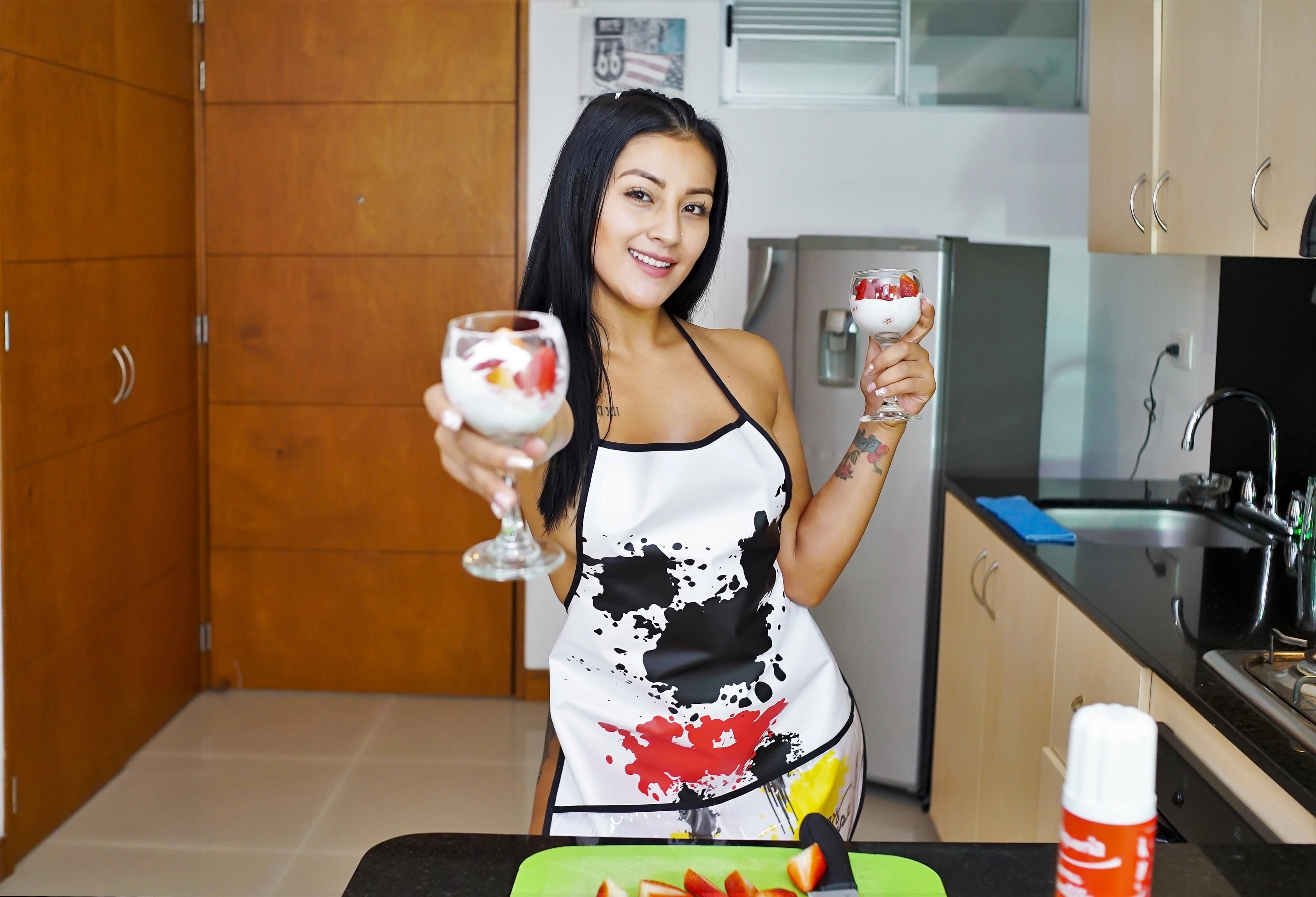 There's nothing sexier than slicing strawberries in the kitchen... well, maybe one thing, and you're about to find out all about it with Mariana Martinez in a hardcore fuckfest that'll leave you needing a snack. Work up an appetite as your turn this big-booty Latina around on the counter and take her hard and fast from behind. Watch as those flawless tits shake back and forth while she moans in utter delight. You can run finger up and down her tattoo that starts at the luscious ass and ends on her thigh, right before she runs her tongue from your balls to the head of your cock. Make a mess in the kitchen today with SLR and the lovely Mariana Martinez - she's the perfect dessert to your main course!