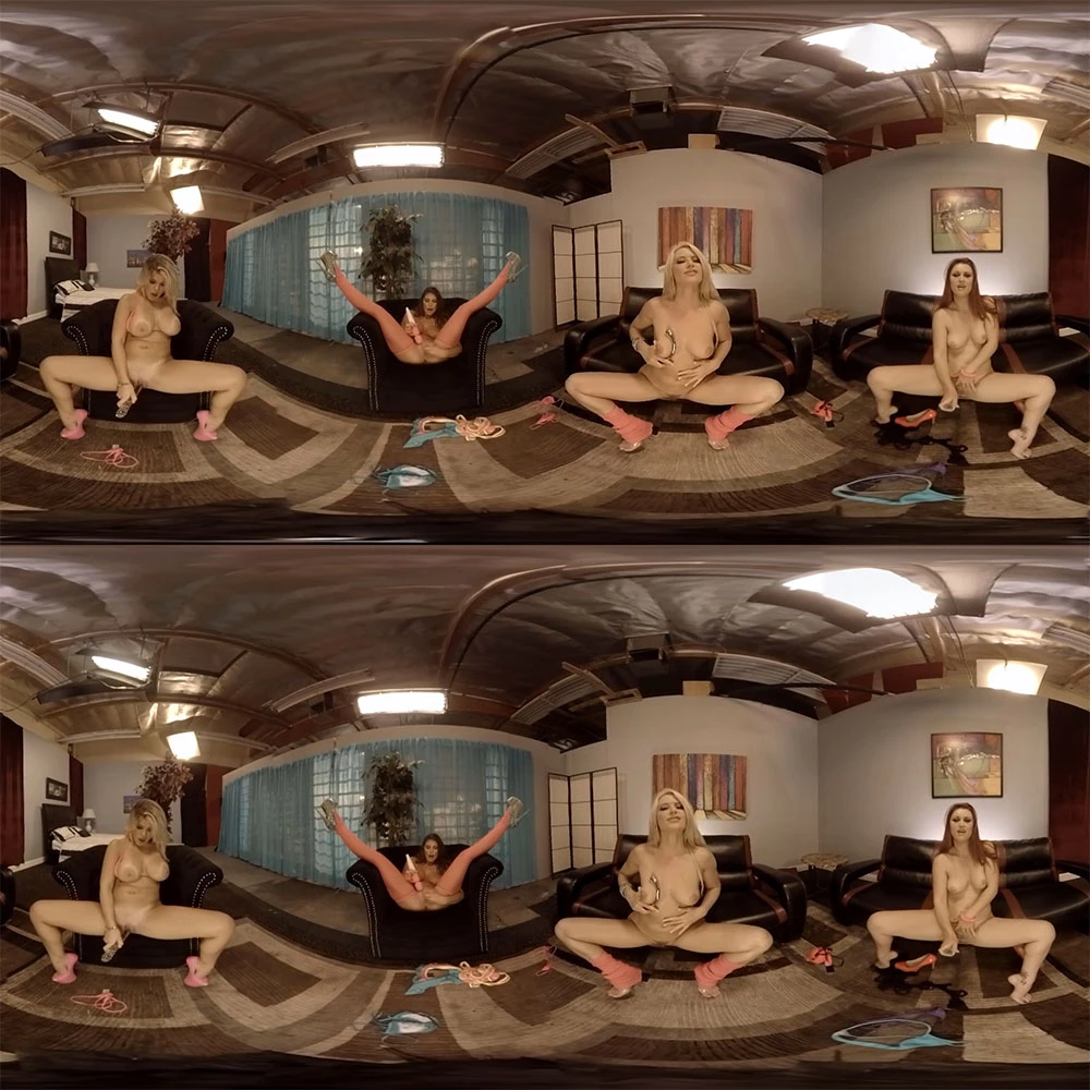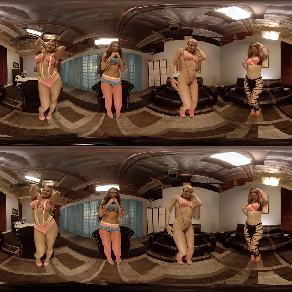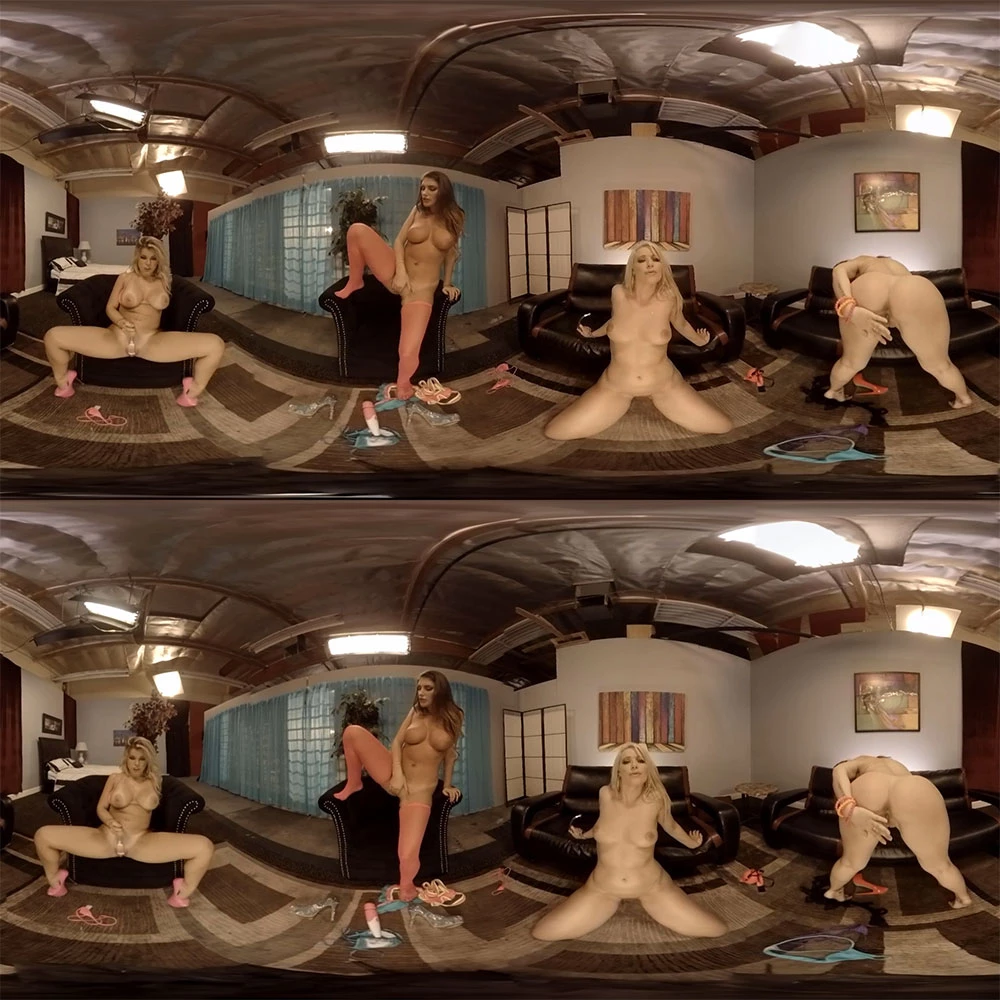 They say three is a crowd, but in this case three is just getting started when four hotties show up to put on one hell of a hot show for you. Anikka, August, Adriana, and Karlie are all decked out in some amazing looking lingerie. Slowly, seductively, the ladies strip off what little they are already wearing. Big tits and curvy hips are on display as they move around the room, bending over to show off those asses while stripping their bottoms off. One by one the babes grab their vibrators and line up. The stripping is done and now it's time to see who can make themselves cum the hardest.